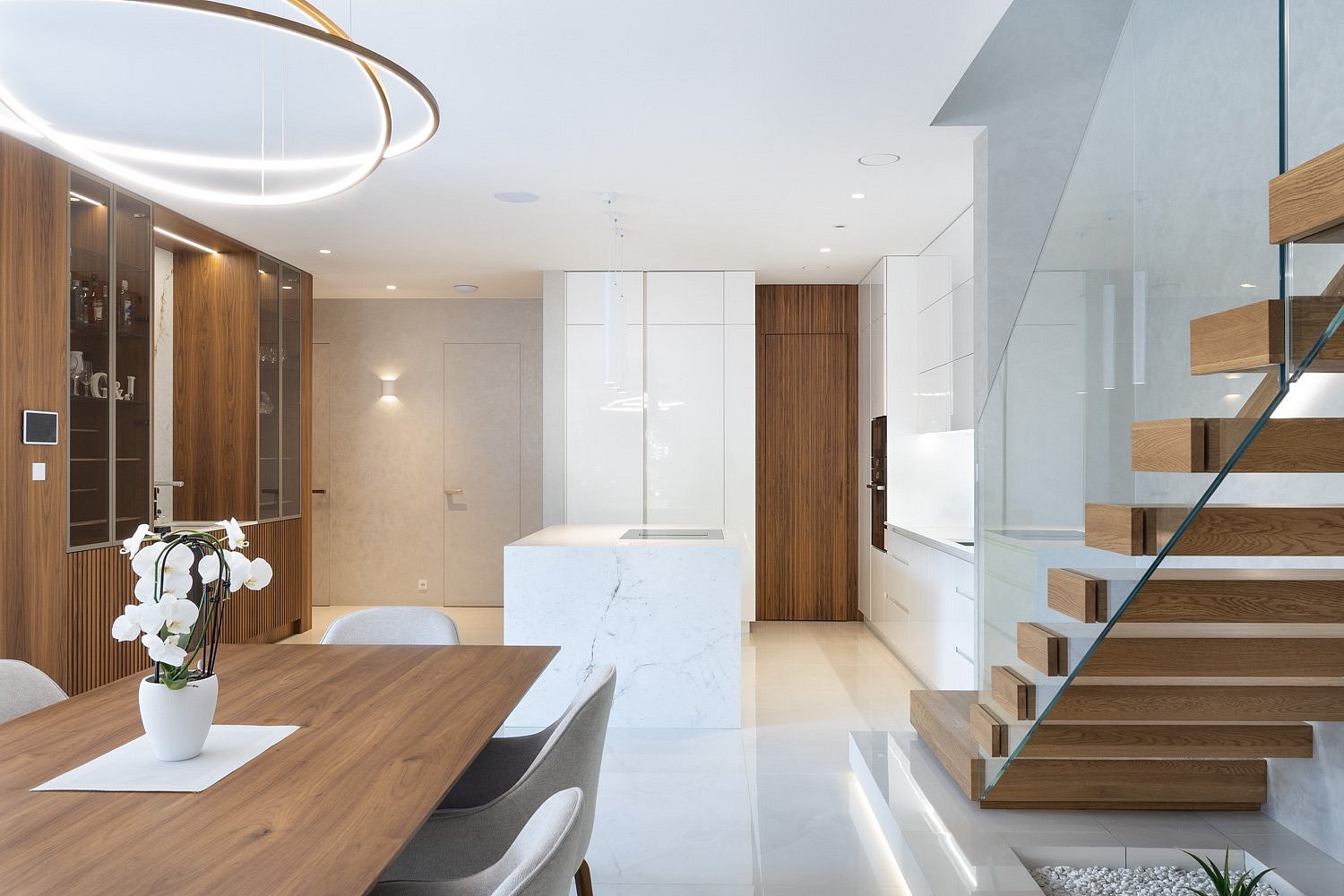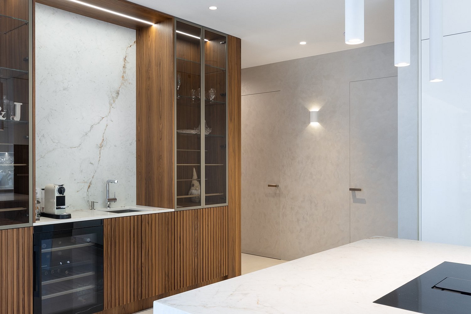 Její perleťový efekt krásně reaguje na světlo a dodává interiéru lehkost a elegantní atmosféru.