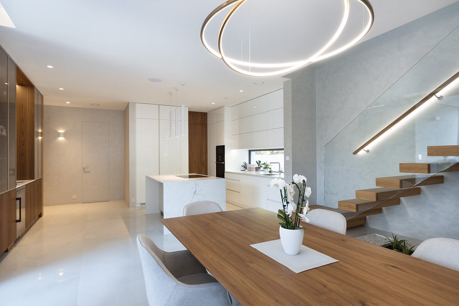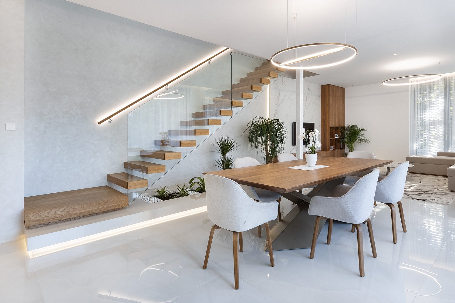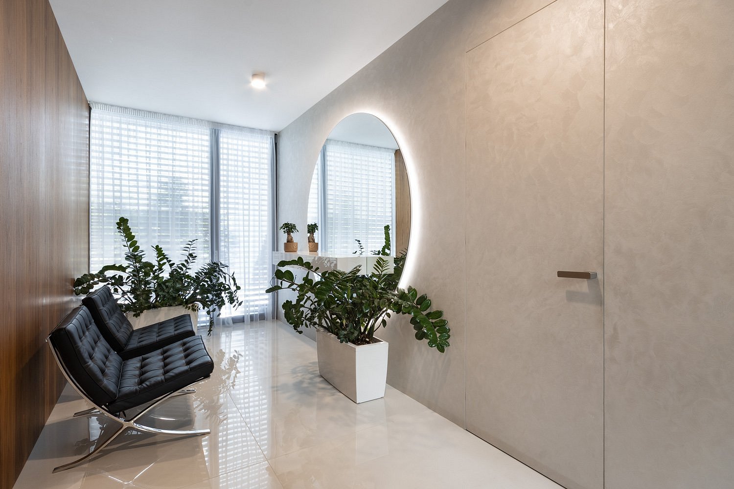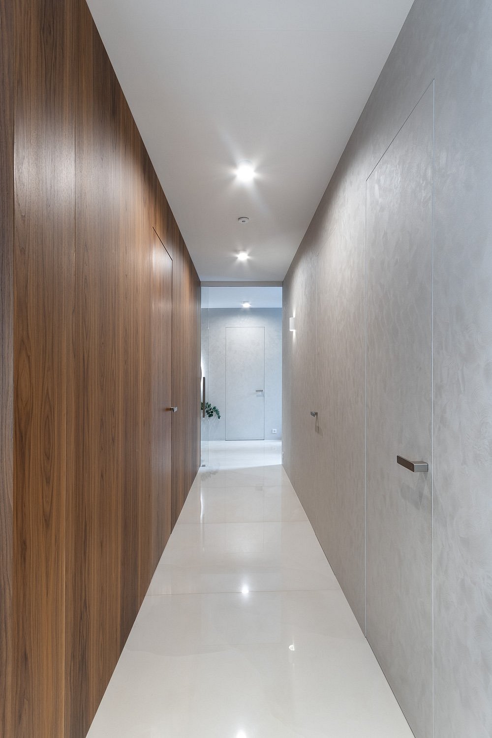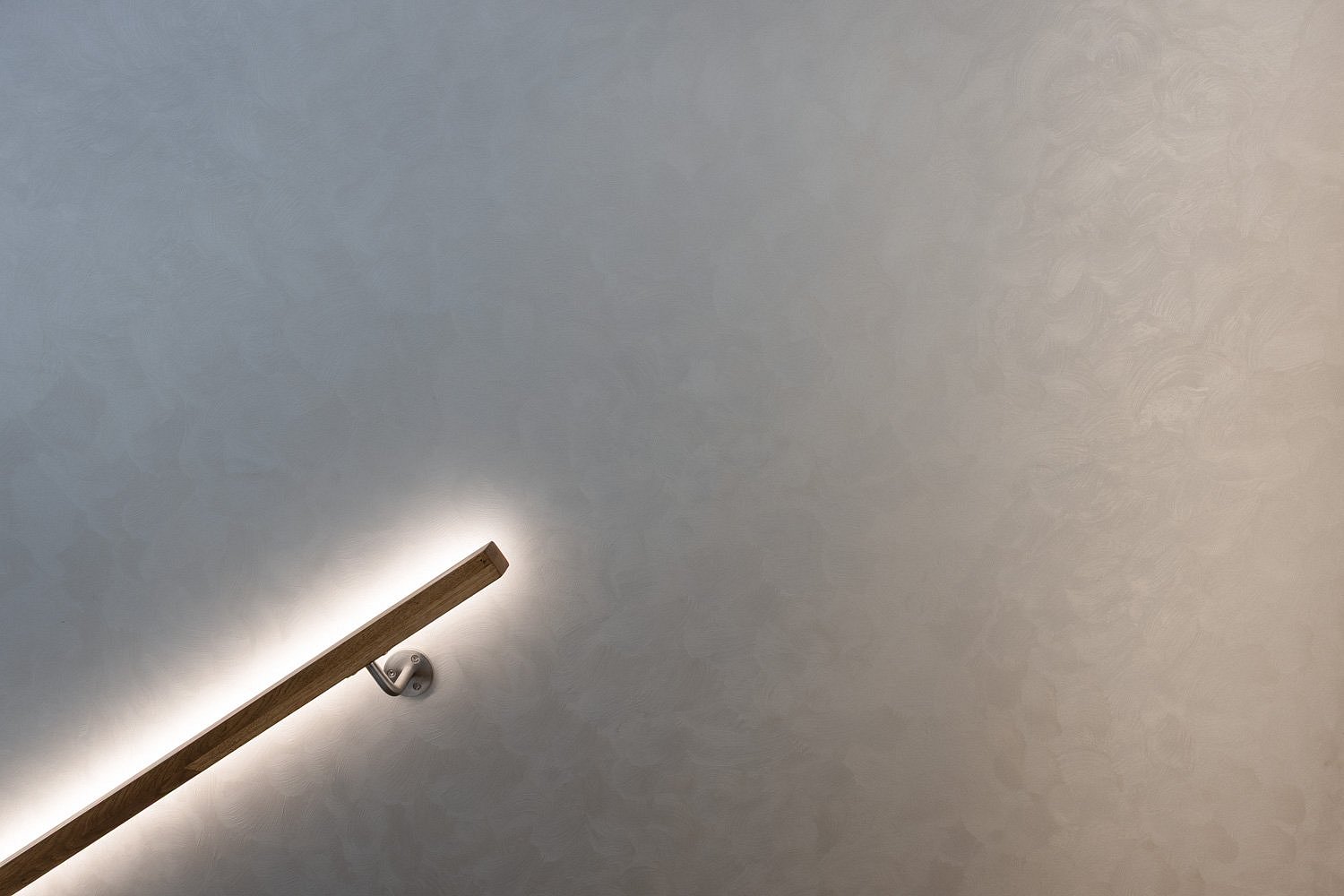 V rodinném domě v Pražské Hostivaři jsme aplikovali dekorativní stěrku Perlata v jemném šedém tónu.